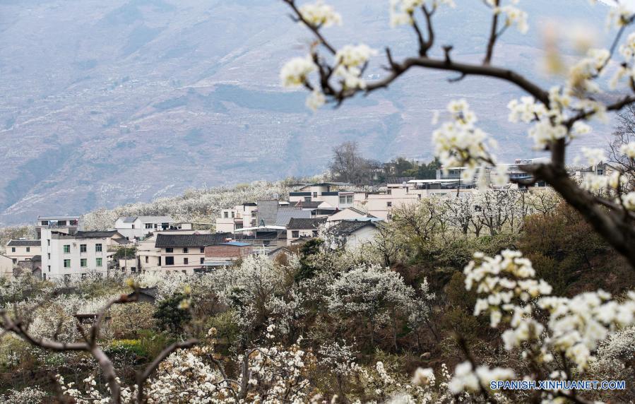 HANYUAN, 6 marzo, 2021 (Xinhua) -- Imagen del 5 de marzo de 2021 de flores de pera floreciendo en la aldea de Datian del municipio de Jiuxiang, en el distrito de Hanyuan, en la provincia de Sichuan, en el suroeste de China. (Xinhua/Jiang Hongjing)